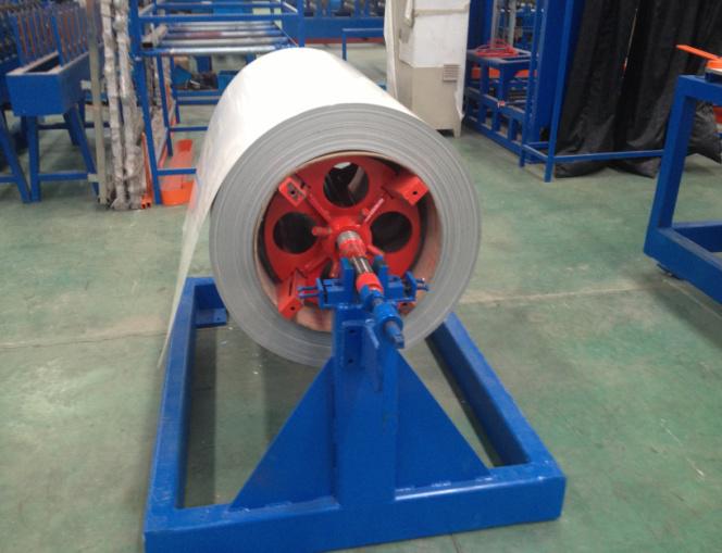主要由瓦楞板壓型機和彩鋼復合機組成,可以一次性制做墻面彩鋼夾芯板或屋面彩鋼夾芯板,并且瓦楞板壓型機和復合機可以獨立生產(chǎn)。整條流水線壓型部分由彩鋼板開卷機、冷彎成型主機、切斷裝置組成,復合機部分由彩鋼板開卷,EPS板或巖棉板輸送,墻面淺波峰壓制,混合涂膠、加溫加壓、復合、平板卷邊、企口板翻邊、開槽、整邊、氣動夾緊、自動覆膜、自動切割、成品拖架組成;